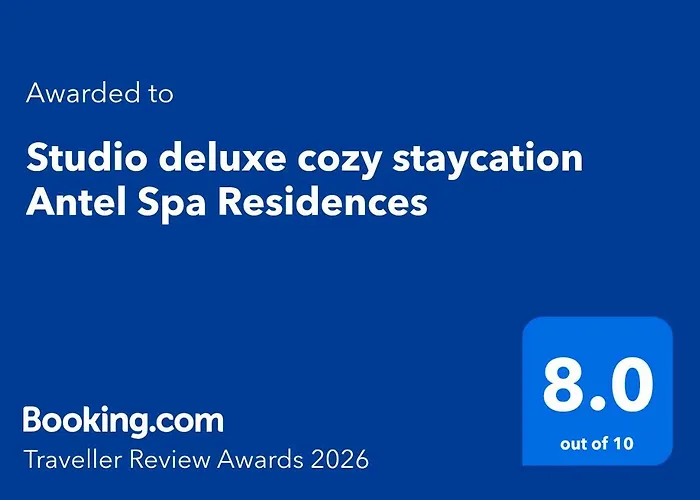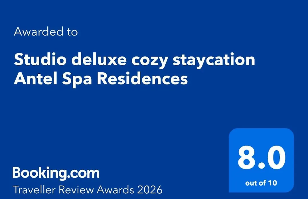 寝室1室のStudio Deluxe Cozy Staycation Antel Spa Residences マニラ市から歩いて6分離れたマカティ・ミュージアムなどの観光スポットへ行きやすいです。 Sts. ピーター・アンド・ポール・パリッシュから550メートルに位置する25m²のアパートは、都市の景色を見渡せるテラスを提供しています。